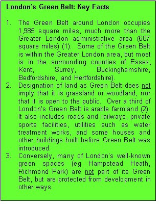 A feature of land use policy in the vicinity of London is the designation of large areas as Green Belt, implying a prohibition on housing and other development except in very special circumstances. One reason why London’s housing is expensive is that demand is unconstrained except by price, while supply of a vital input – land with permission for development – is constrained by the Green Belt.