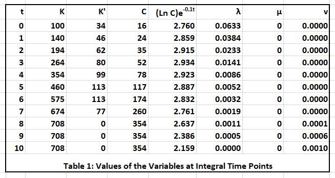 Optimal Time Paths Table